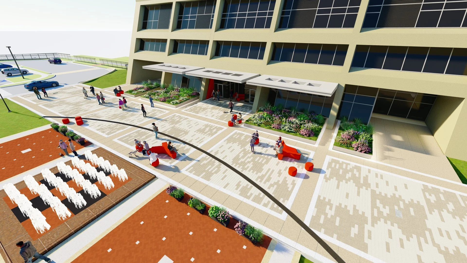 The team entered into phases of iterative designs that solved the issues of the entrance, and were able to agree on an economical solution that considered future additions to the campus. DTLS was also able to make finer stroke additions to the project, like honoring the architecture with the pavers, the addition of grasses and forbs that are enjoyable to the pet associates on the Nestlé-Purina campus, and incorporating universal design principles into the plaza.