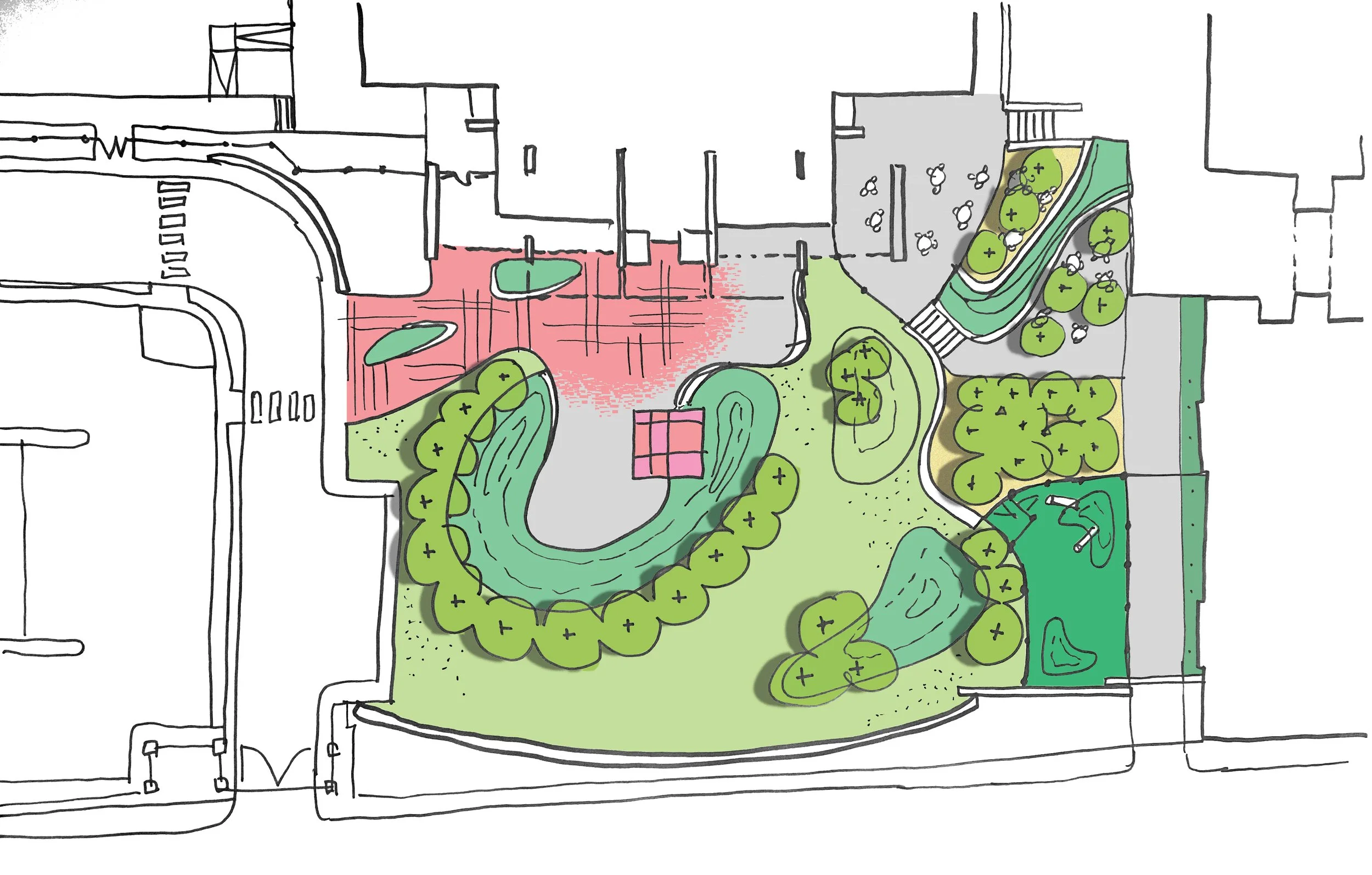 This at-grade water feature consumes considerably less water than its predecessor and is accessible to individuals of all ages and abilities. As further enhancements are made to this entrance plaza, the team anticipates continued collaboration with specialists and clients to resolve challenges and cultivate an inclusive and engaging environment for all users, including pets.