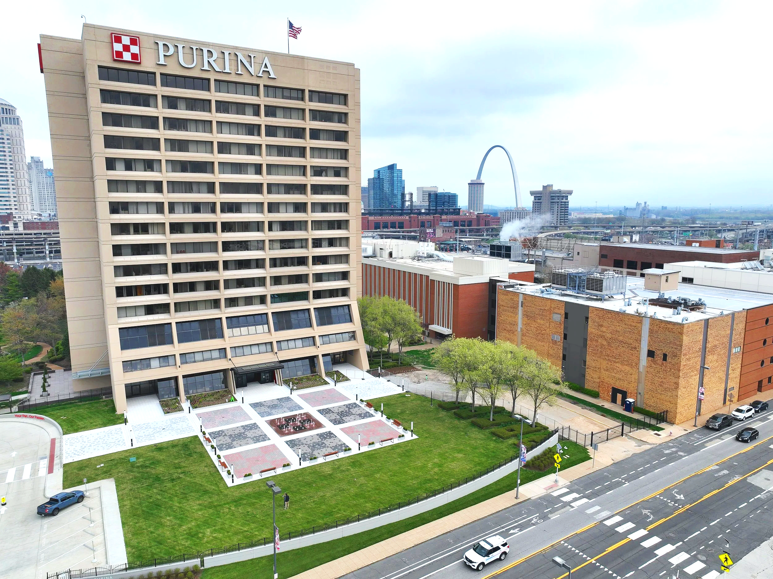 DTLS was asked by Nestlé-Purina to design and enhance the entrance plaza at the Nestlé-Purina Headquarters Tower off Chouteau Avenue. The design team worked very closely with the client to come up with solutions that would solve the needs of the campus entrance, like security improvements, future projects, and sense of arrival.