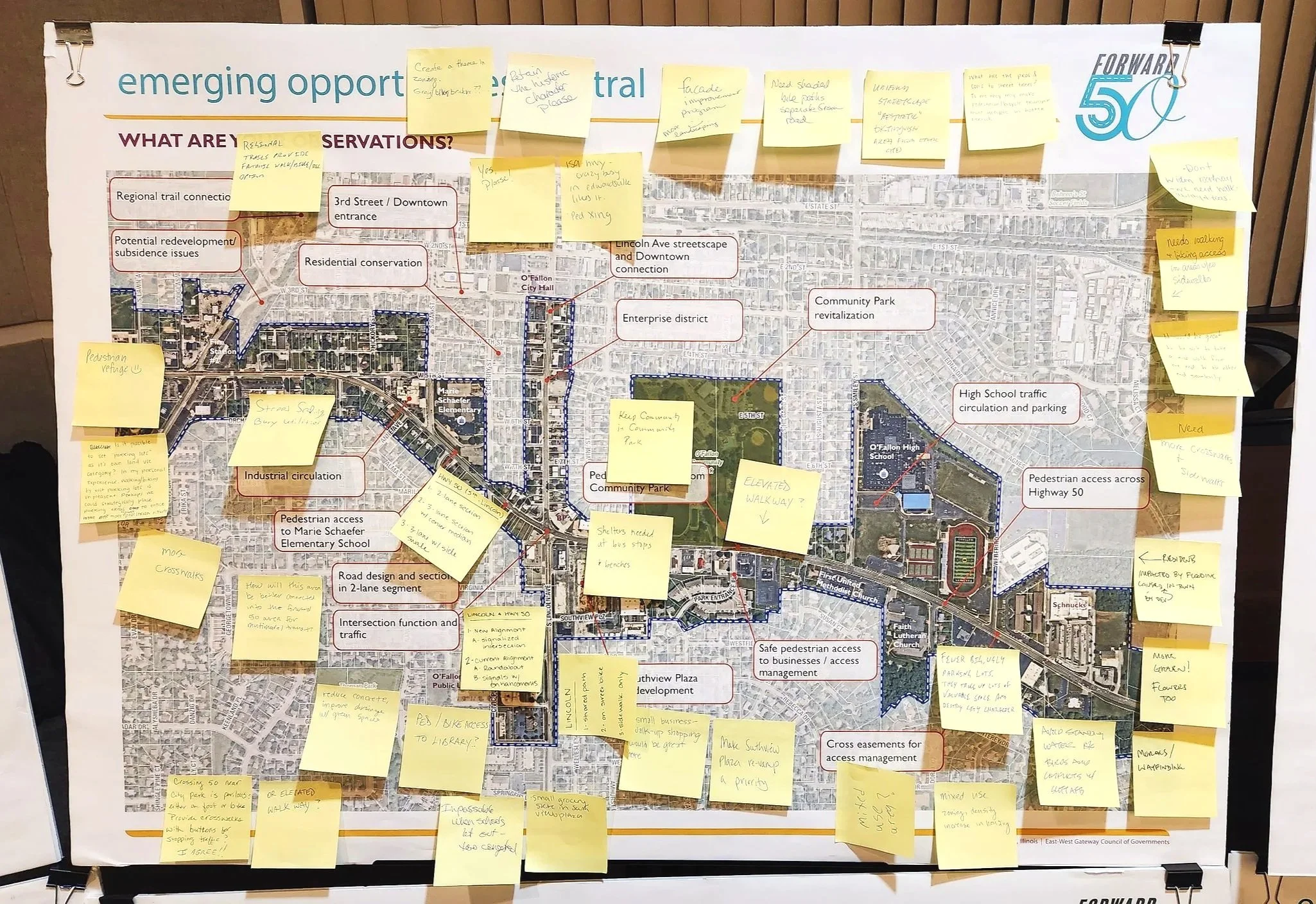 In 2023, the City of O’Fallon, Illinois participated the Great Streets Initiative planning process to reimagine the Highway 50 Corridor. The project area spans along Highway 50 from the Interstate 64 interchange to Scott Troy Road and includes Lincoln Avenue from 3rd Street to Civic Plaza, connecting key community assets like schools, parks, and sports facilities.