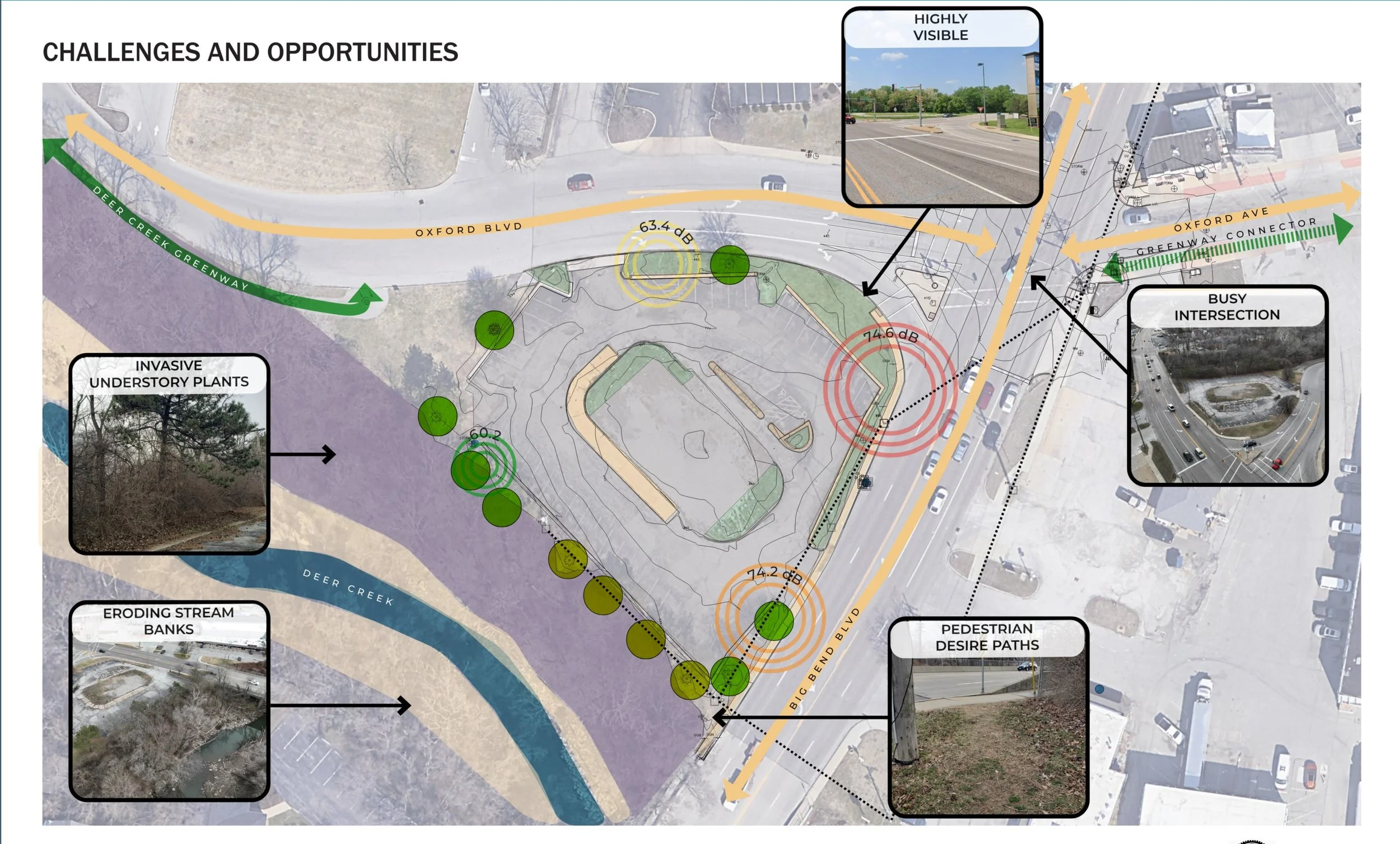 In conjunction with the expansion of the Deer Creek Greenway, a vacant parcel will be transformed into a new park for the enjoyment of visitors traveling the 6-mile greenway connecting several communities in St. Louis County and St. Louis City. The new park, along with a 1-mile stretch of greenway, is being developed through a partnership between Great Rivers Greenway, the City of Webster Groves, and the City of Maplewood. It will be operated and cared for by the City of Webster Groves.